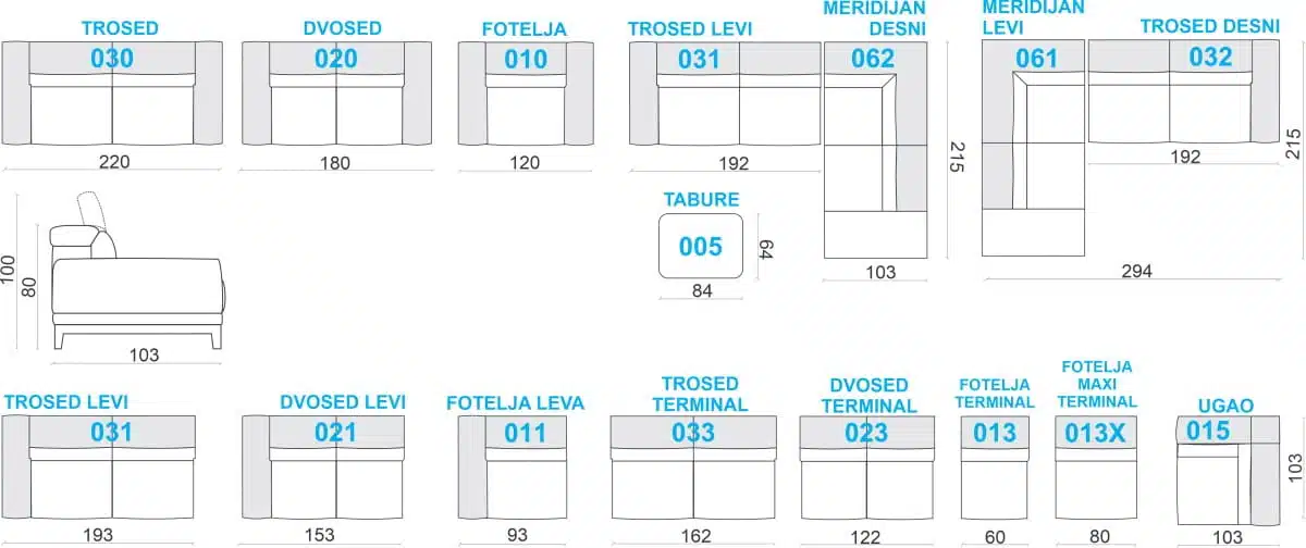 Jas. sedišta | Poliuretanska pena gustine 32 kg/m³ + sloj akrilnih vlakana gustine 350 gr/m² |