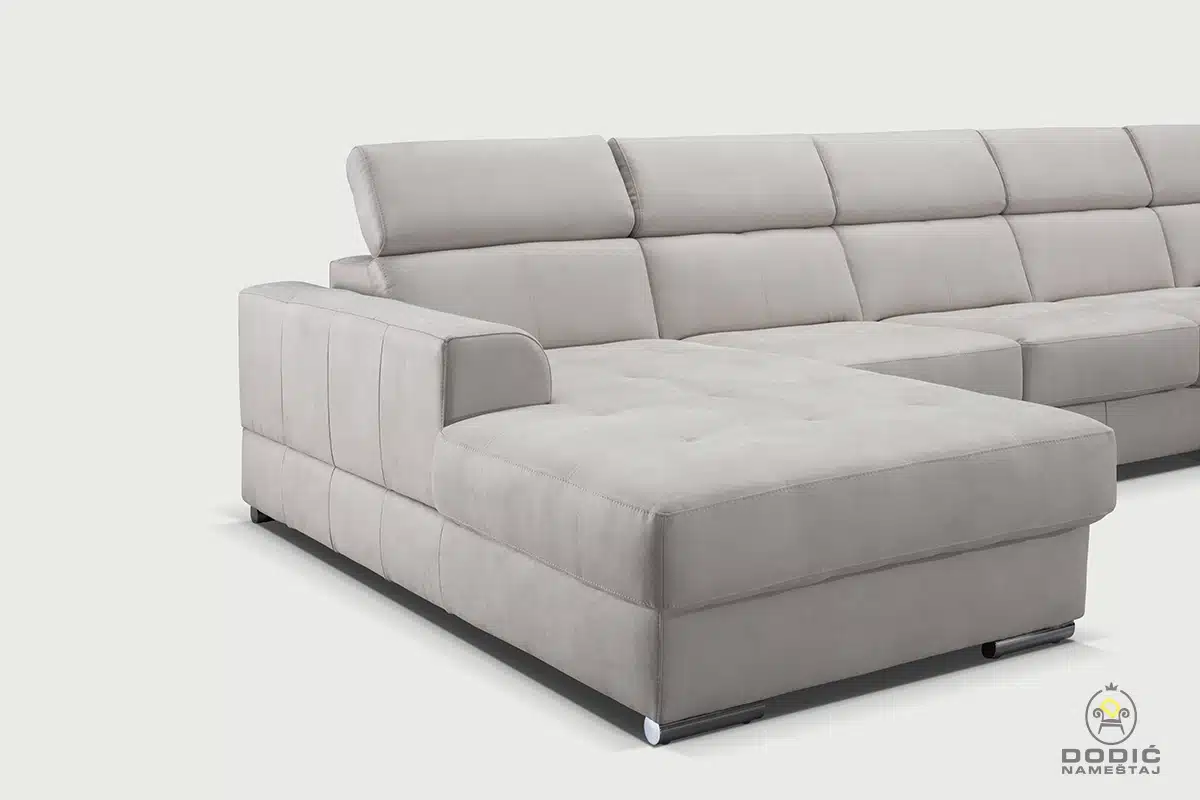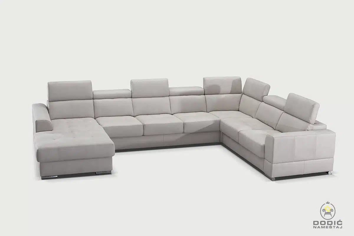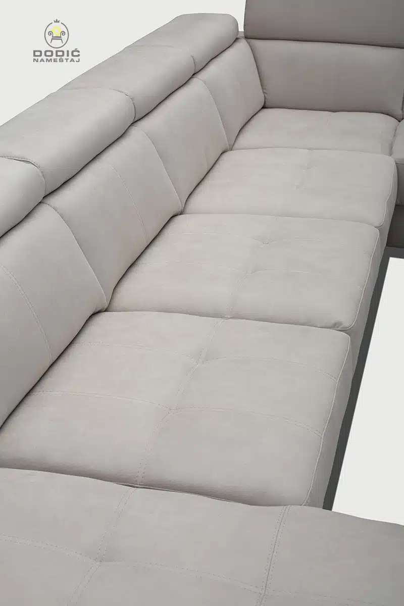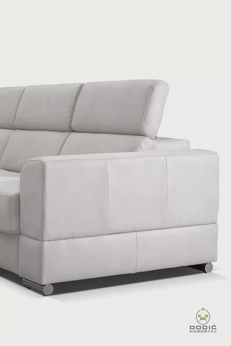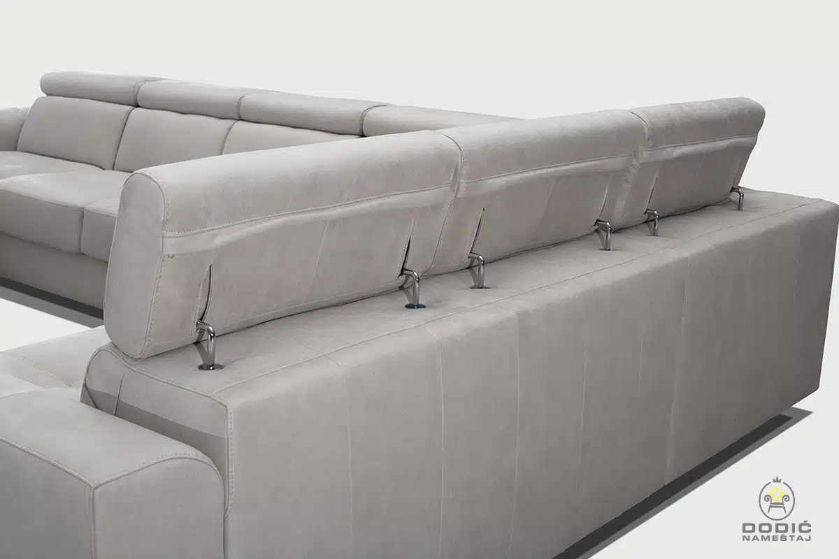 Ugaona garnitura Brisel je modularna i savremeno dizajnirana garnitura. Odiše čistotom i luksuzom a enterijerima daje crtu savremenom uređenja sa puno stila. Komfor je drugo ime ove garniture, a uzglavlja se pomeraju u položaje po želji.