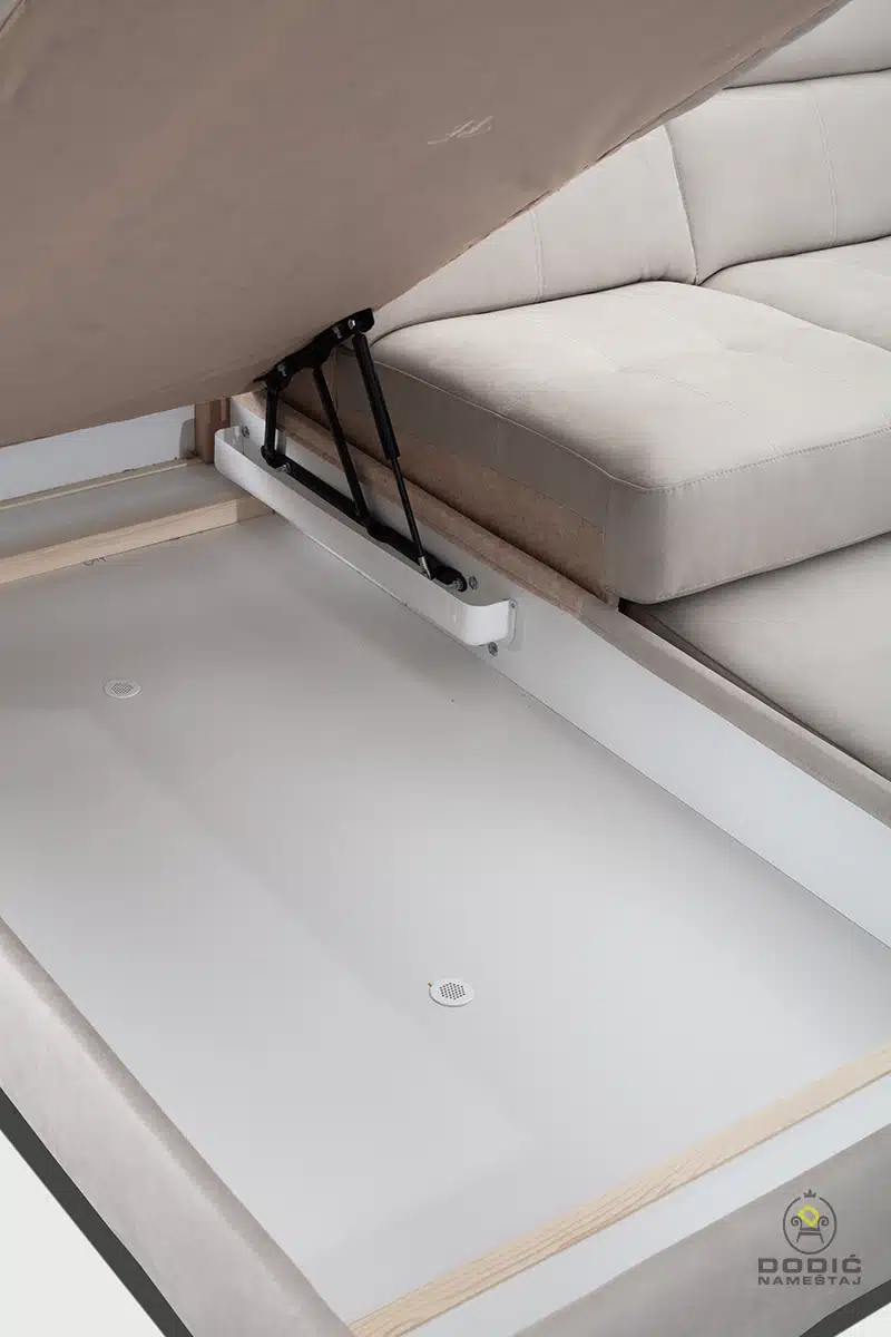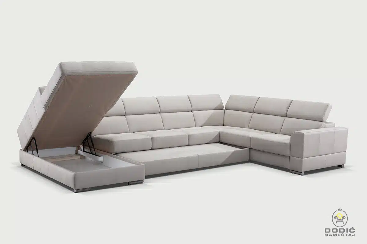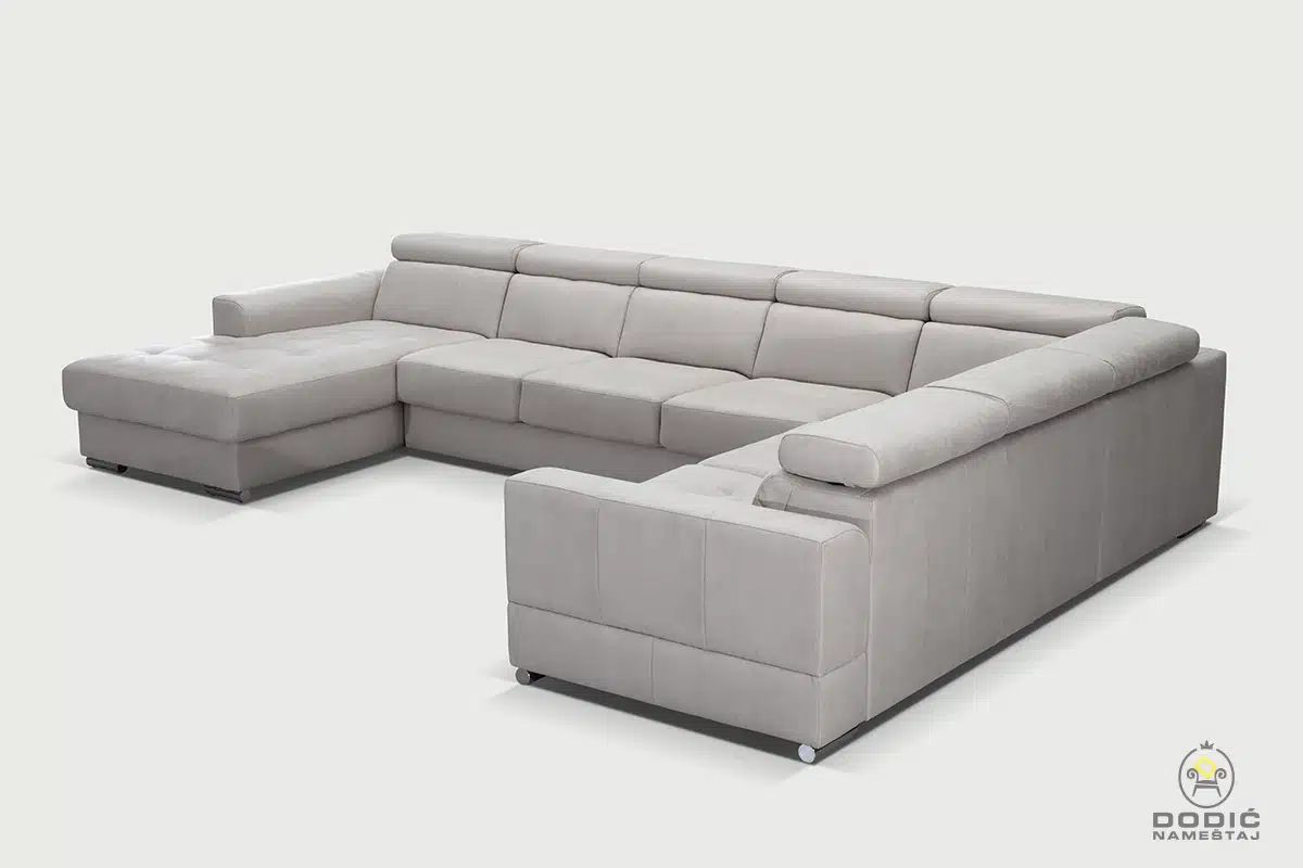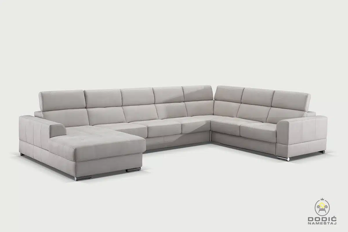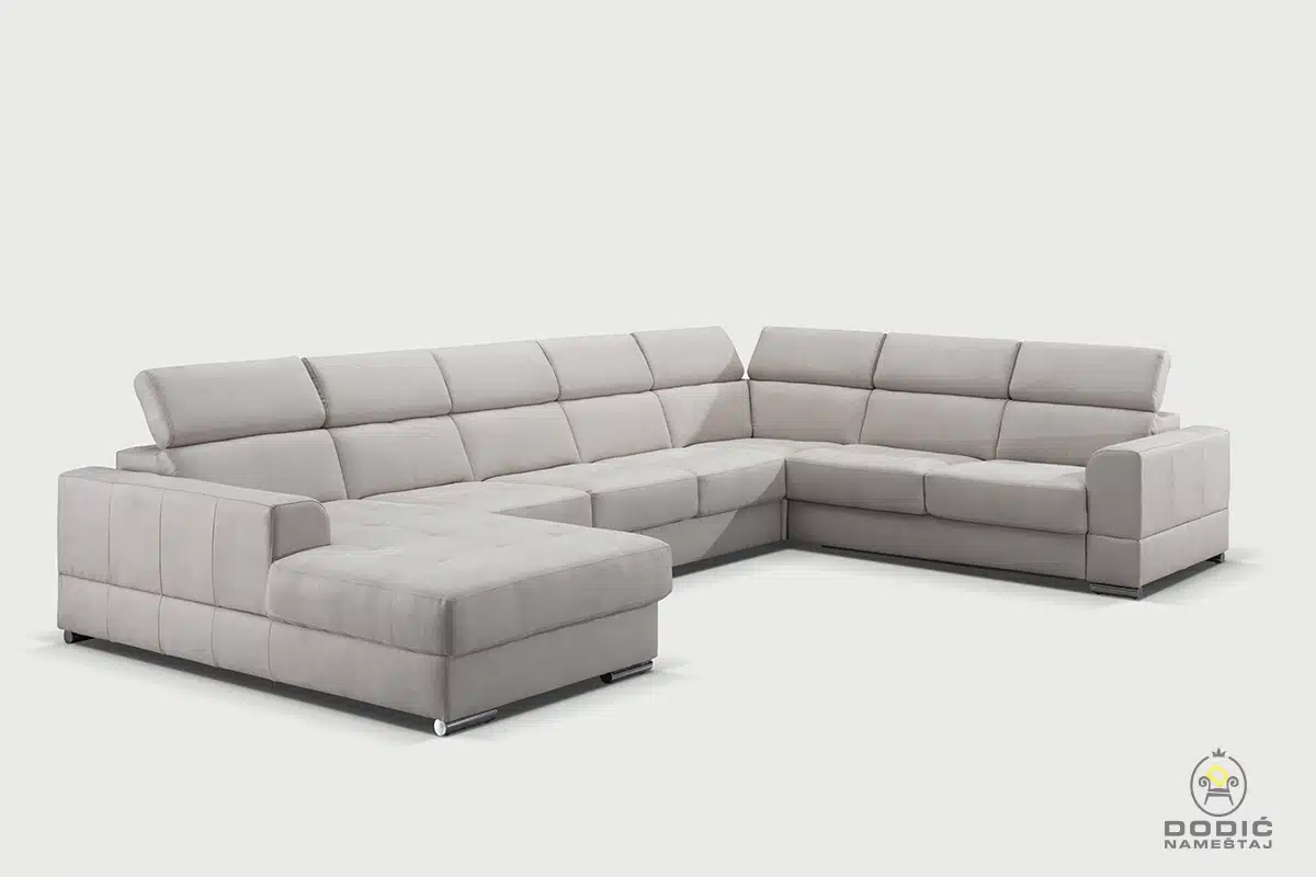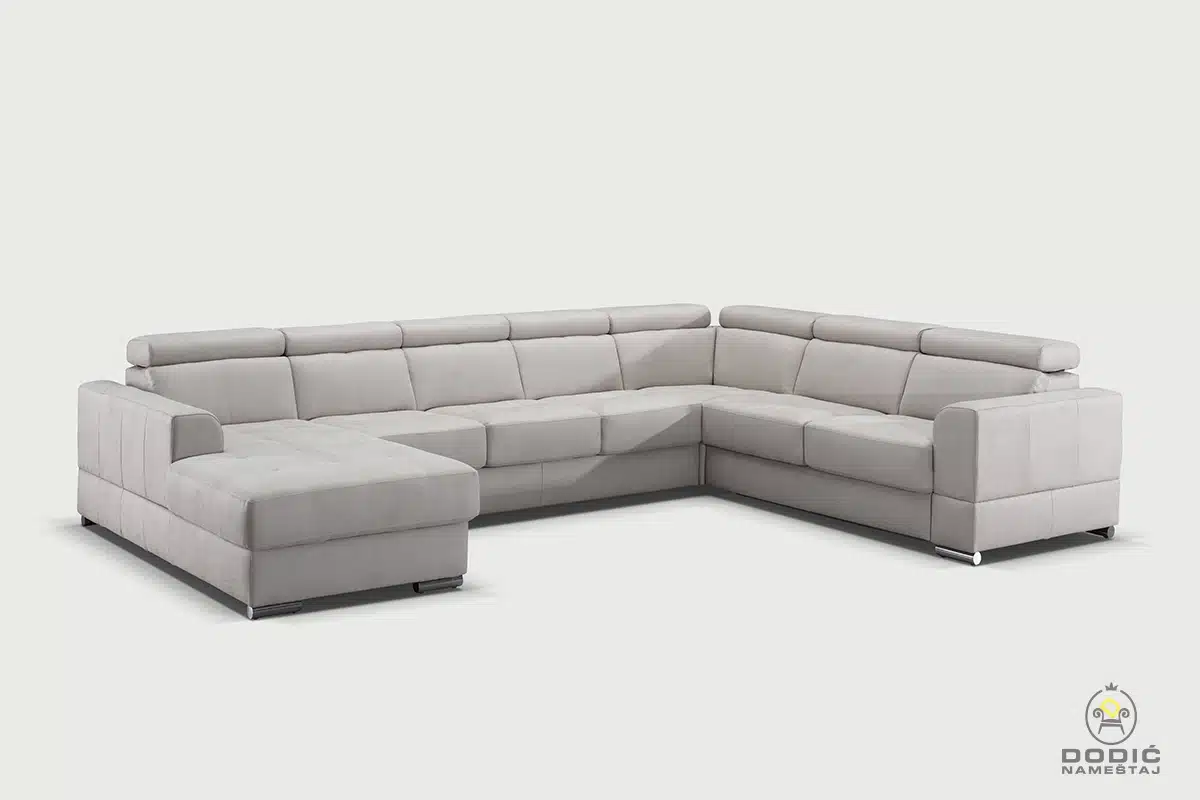 Ugaona garnitura Brisel je modularna i savremeno dizajnirana garnitura. Odiše čistotom i luksuzom a enterijerima daje crtu savremenom uređenja sa puno stila. Komfor je drugo ime ove garniture, a uzglavlja se pomeraju u položaje po želji.