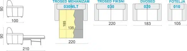 Napoli – Četvorosed, sofa, fotelja i tabure
