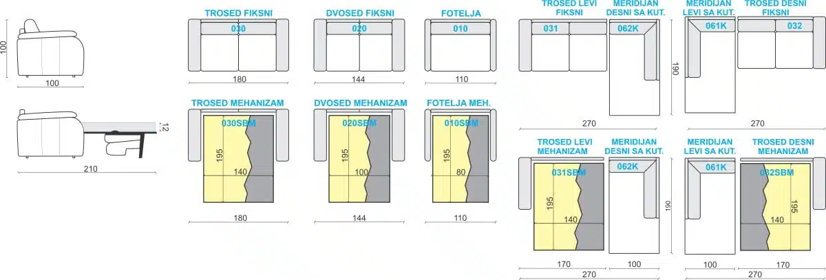 Tip | Mehanizam na izvlačenje u tri preklopa sa rotirajućim naslonom |