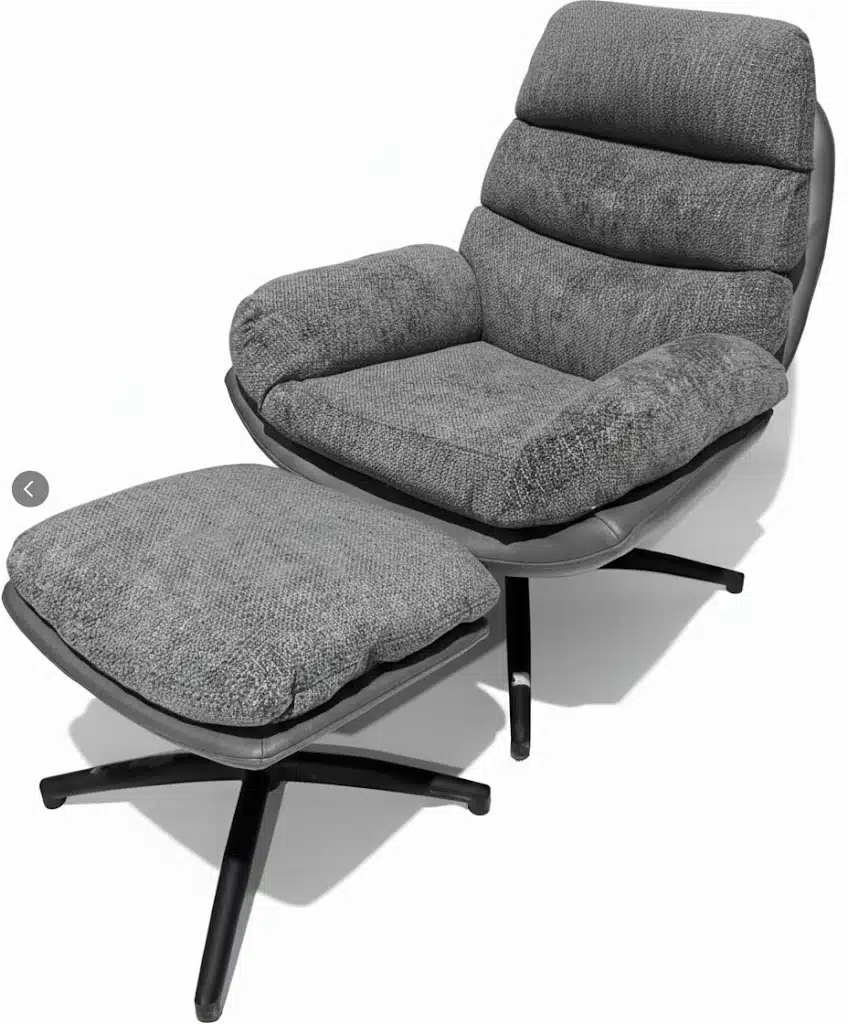 Fotelja sa tabureom Elegance Siva/Crne noge