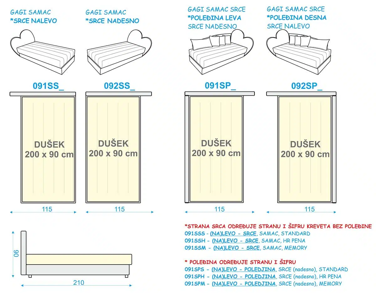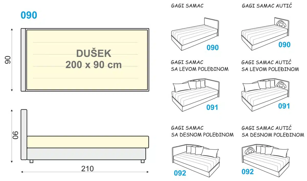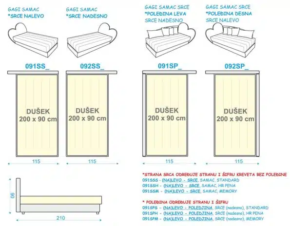 Uzglavlje | Poliuretanska pena gustine 20 kg/m³ + sloj akrilnih vlakana gustine 200 gr/m² |