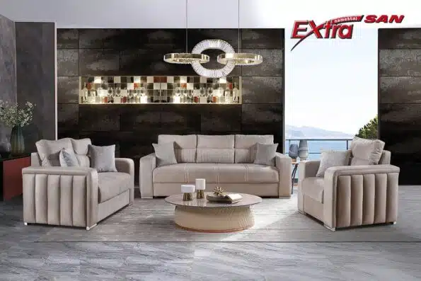 Svojom elegancijom oplemeniće svaki prostor. Spoj prefinjenosti i udobnosti daju notu luksuza, spoj klasičnog i modernog učiniće dnevnu prostoriju toplim i prijatnim mestom za boravak i omogućiće da uživate u svakom trenutku provedenom na ovoj garnituri.