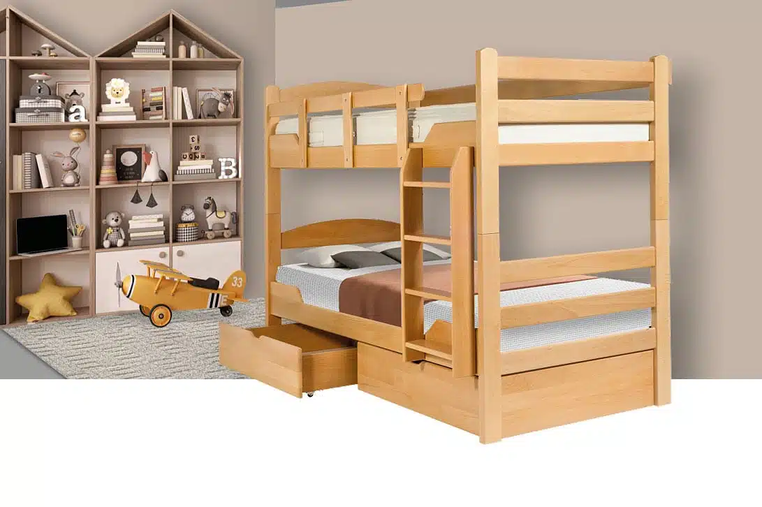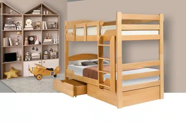 Drveni krevet K3 (krevet na sprat) dostupan je u više različitih dimenzija i boja. Postoji mogućnost dodavanja fioka i maski uznožja.