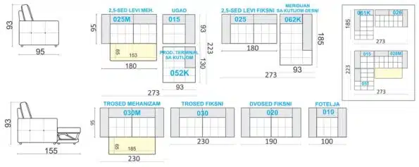 Presvlaka Mebl-štof; Eko koža (PU); Koža/krosta (*dušek u PU, u koži na zahtev);