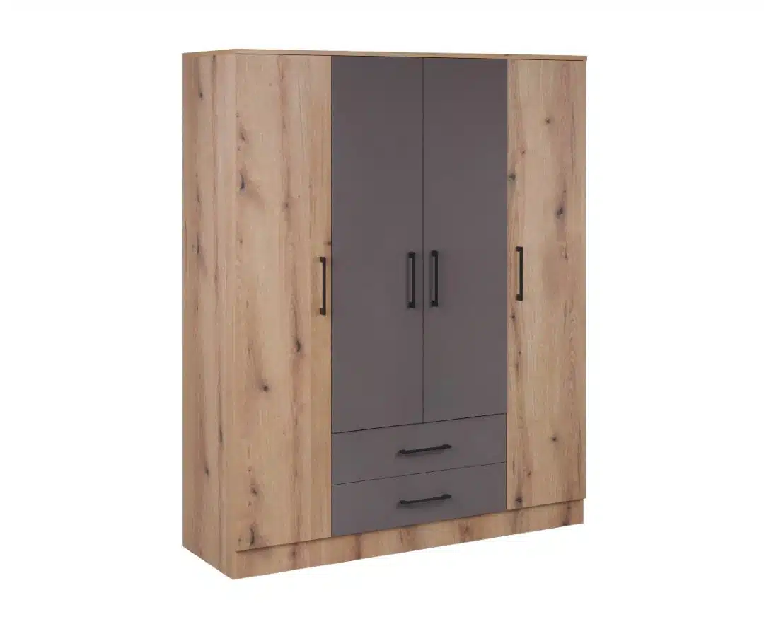 Garderober Fortuna soft F2POL je višenamenski ormar, modernog i elegantnog dizajna, izrađen od oplemenjenog univera debljine 18mm. Unutrašnjost ormara je bele boje, na vrhu se nalazi polica. Ispod police, u jednom delu nalazi se garderober šipka, a u drugom police za odlaganje garderobe. Idealan za kombinaciju sa ostalim garderoberima iz ove kolekcije.