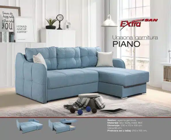 Ugaona garnitura Nikolas je klasična i udobna. Praktičan mehanizam u trenu pretvara trosed u udoban ležaj za spavanje.