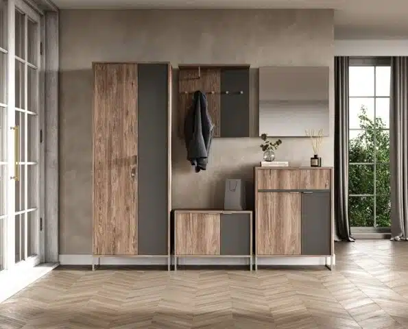 Nameštaj u enterijeru obojen je bojom drveta TAMNI ORAH