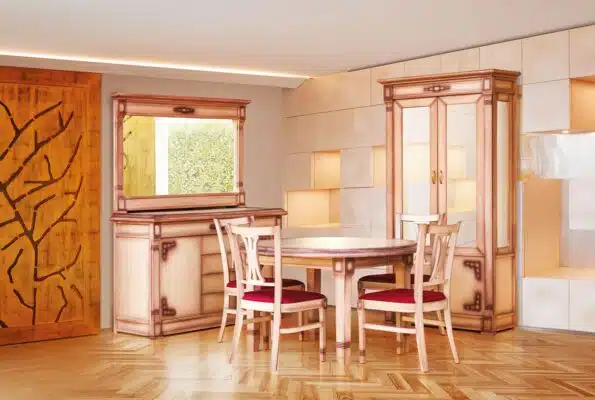 Nameštaj u enterijeru obojen je bojom drveta BELA PROVIDNA sa specijalnim efektom senčenja