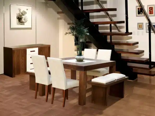 Nameštaj u enterijeru obojen je bojom drveta PROVIDNO BELA izuzev stola na razvlačenje koji je u VENGE boji.