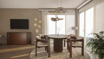 Nameštaj u enterijeru obojen je bojom drveta VENGE