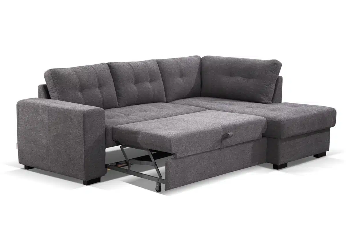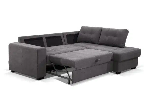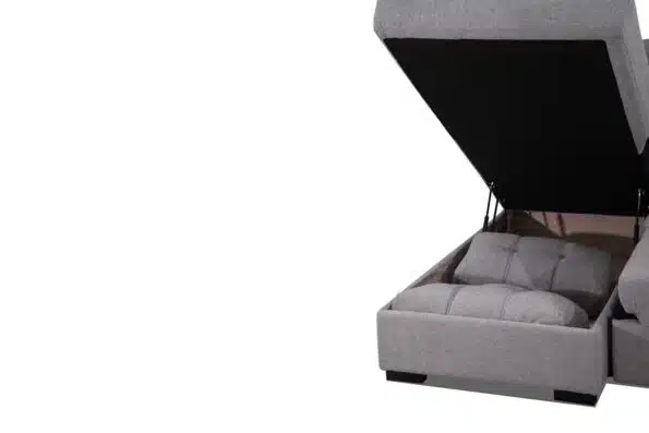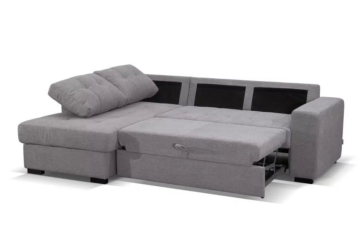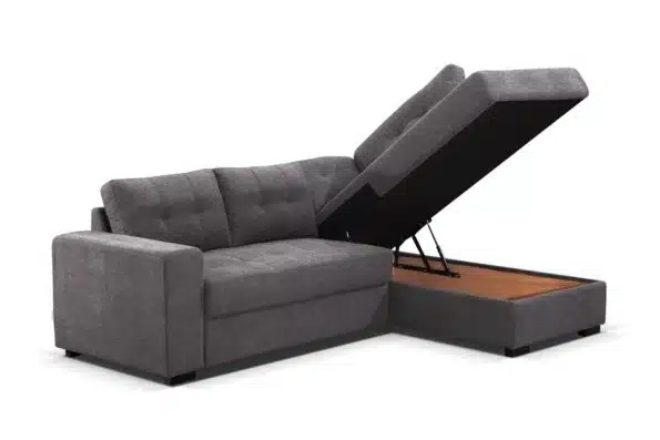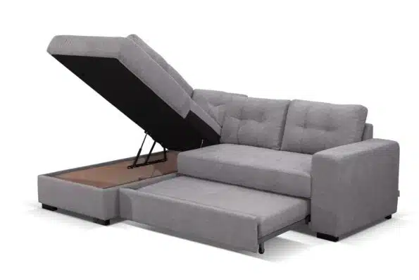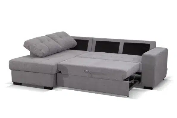 Ugaona garnitura Trendy je moderna, savremenog dizajna, i lako uklopljiva u bilo koji prostor. Garnitura je izuzetno komforna i jednostavno se pretvara u udoban i prostran ležaj. Ima prostor za posteljinu.