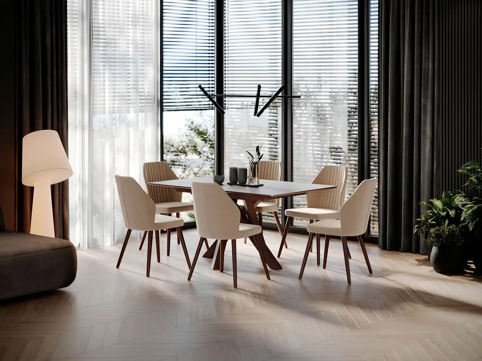 Nameštaj u enterijeru obojen je bojom drveta VENGE
